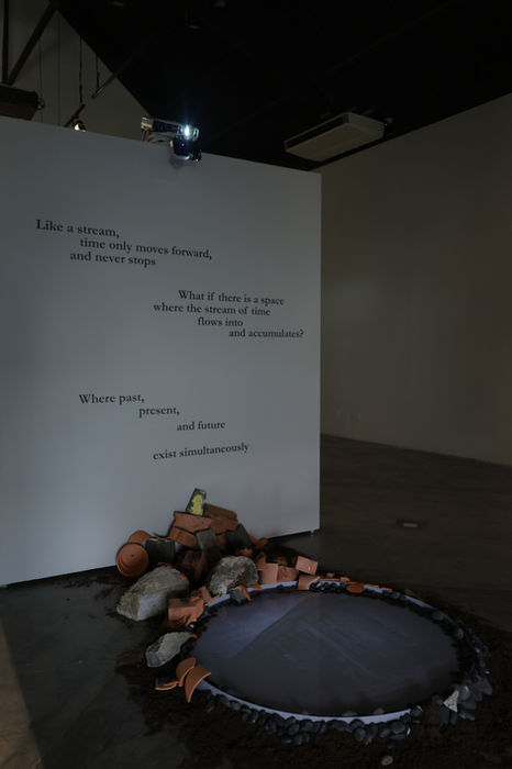 Projected onto a pool of water, the work borrows the physical form of water as a symbolism of a portal where different timestreams flow into each other. The ‘portal’ also parallels the phenomenon of online video streaming sites, as the work examines the accessibility of vision of another time-space through the Internet, with visual materials from across time and geographical locations being shared online, restored, and even upscaled to fulfil our desire to peek into another point in the time-space continuum.